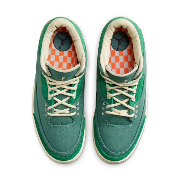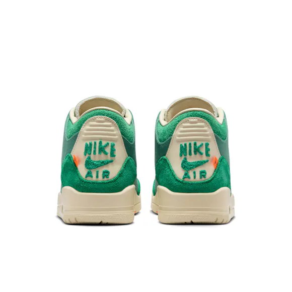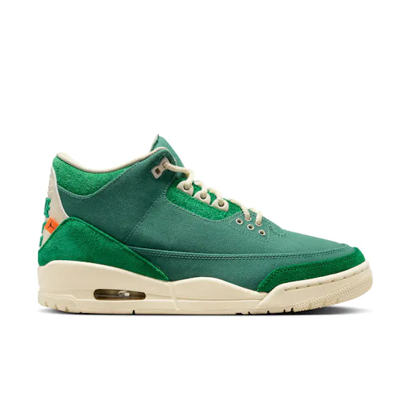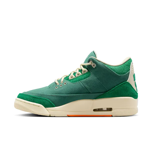 In her 2nd collection with Jordan, Nina Chanel Abney puts her own interpretation on classic silhouettes like the AJ3. Waxed canvas and suede overlays come together with rope laces to create a unique take on an iconic shoe. Special details like the heel design showcase Nina's commitment to style.
